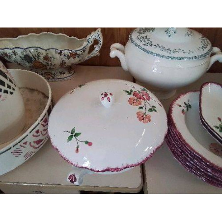 • SOUPIÈRE ROSE EN FAIENCE AVEC MOTIF FLORAL