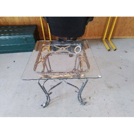 TABLE BASSE GRISE AVEC PLATEAU EN VERRE