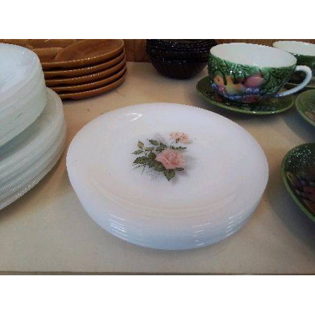 LOT DE 6 ASSIETTES À DESSERT OPALINE MOTIF FLORAL