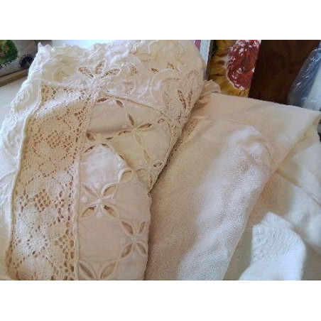 PAIRE DE REIDEAU EN COTON ET DENTELLE