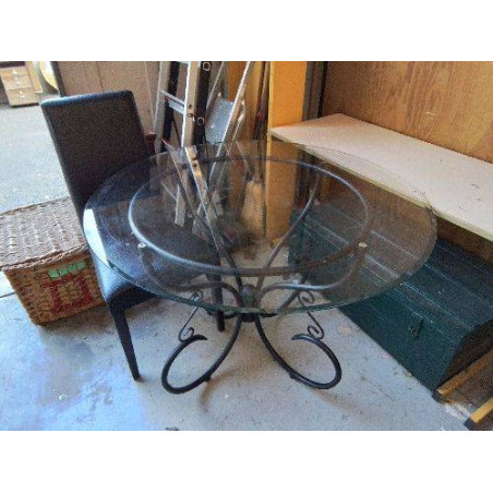 • TABLE RONDE AVEC PLATEAU EN VERRE ET PIED CENTRAL NOIR