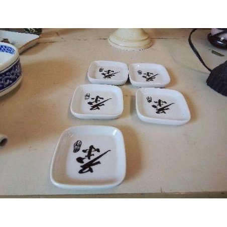 LOT DE 5 PETITE ASSIETTE CARRÉ CALIGRAPHIE ASIATIQUE