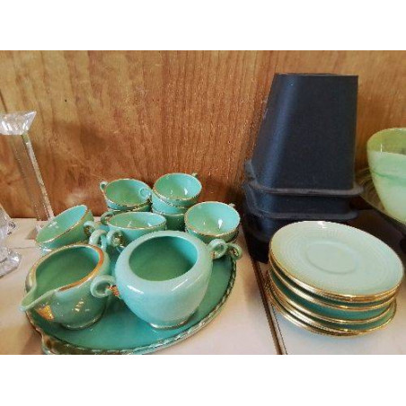 • SERVICE À CAFÉ VERT ET DORÉ