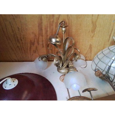 • SUSPENSION 3 TULIPE ACIER DORÉ VERRE DÉPOLI