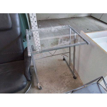 • PETIT BUREAU PLATEAU EN VERRE SUR ROULETTE
