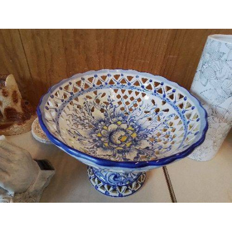 • GRANDE COUPE À FRUIT BLEU EN CERAMIQUE MOTIF FLORAL