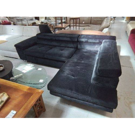• CANAPÉ D’ANGLE 5 PLACES NOIR CONVERTIBLE AVEC COFFRE  REF